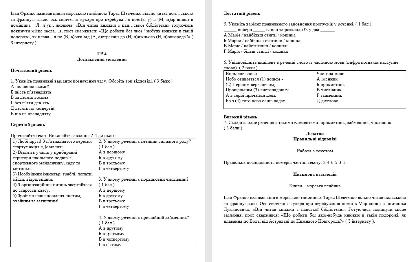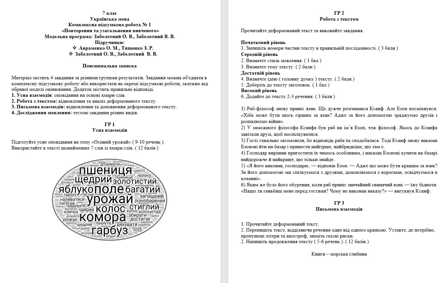 КПР. 6 клас. Українська мова. “Повторення й узагальнення вивченого” за чотирма ГР; 2 ...