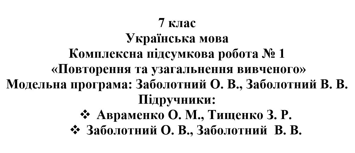 КПР. 8 клас. Українська мова. “Повторення й узагальнення вивченого в 7 класі” за чоти...