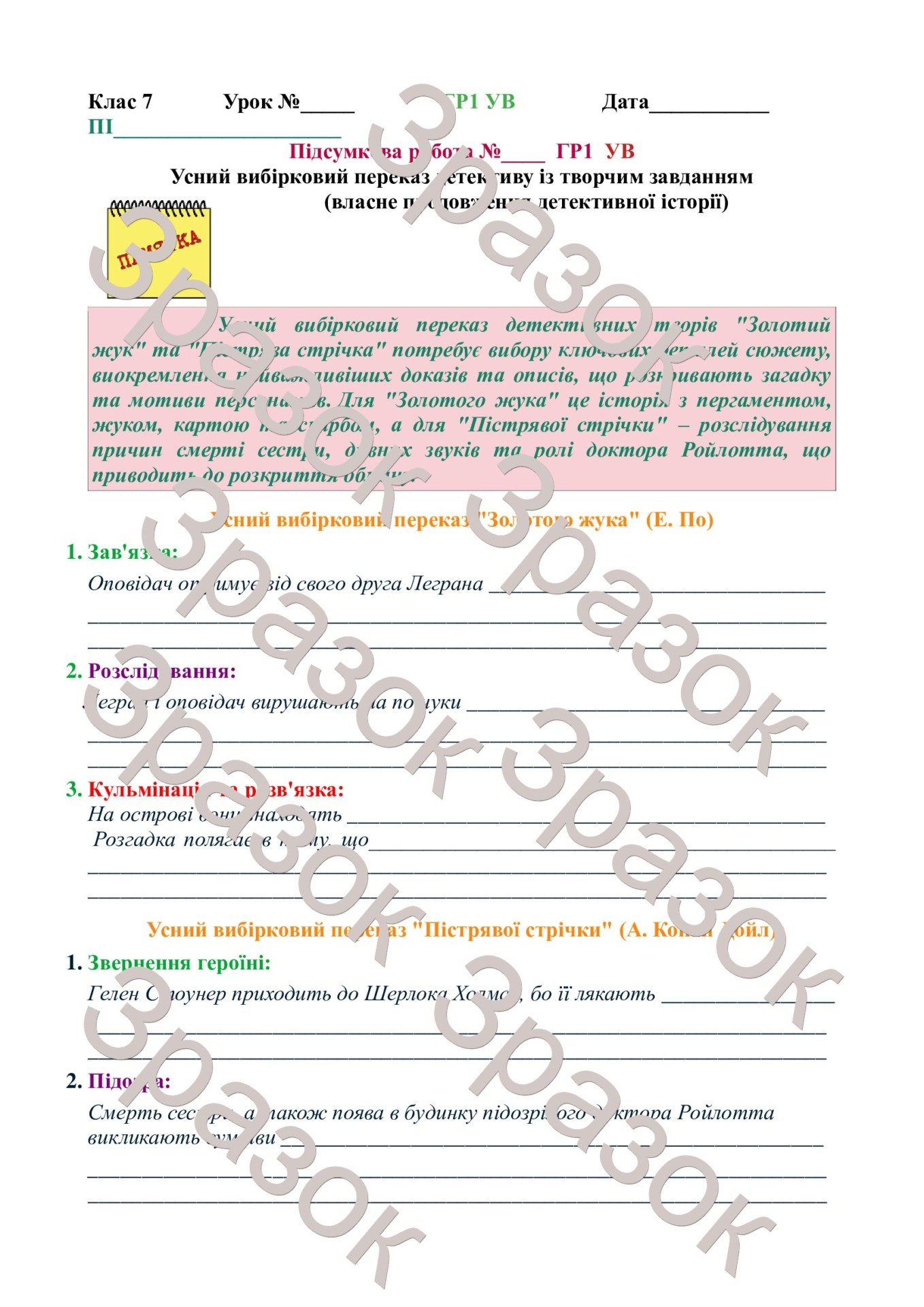 Комплексна підсумкова робота №5 за розділом «Розслідуємо детективні історії» (за творами Е.По «Зо...