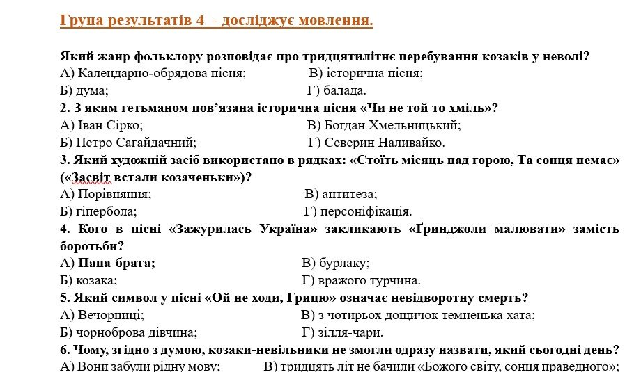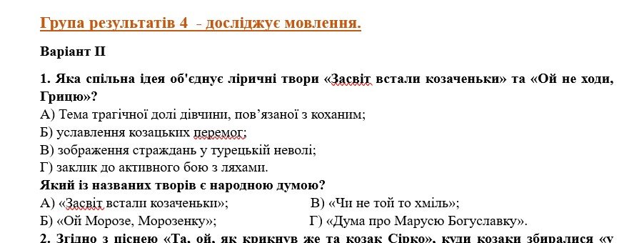 Комплексна підсумкова робота з української літератури для 8 класу НУШ “На струнах кобзи, ліри та бандури” містить завдання за чотирма групами результатів (ГР 1, 2, 3, 4). МНП Заболотного