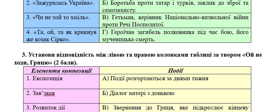 ГР 2 – завдання на встановлення відповідності за прочитаними творами, правда чи фейк тощо – 2 варіанти;