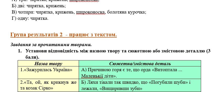 - ГР 2 – завдання на встановлення відповідності за прочитаними творами, правда чи фейк тощо;