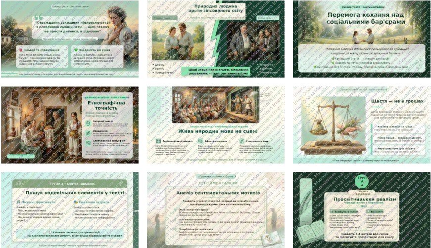 Практичний блок – робота в групах “Жанровий мікс”, узагальнення, аналіз за стратегією ДОК (питання різних рівнів складності), робота в парах “Режисерський кастинг”, робота з ШІ, аналіз, активне посилання на онлайн-гру “Встановлення послідовності елементів композиції”, активне посилання на онлайн-кросворд, значення творчості автора, рефлексія “Театральний квиток”, мікротрансформація “Від сміху – до роздумів”, диференційоване домашнє завдання, підсумок.