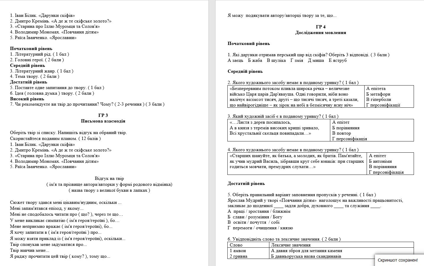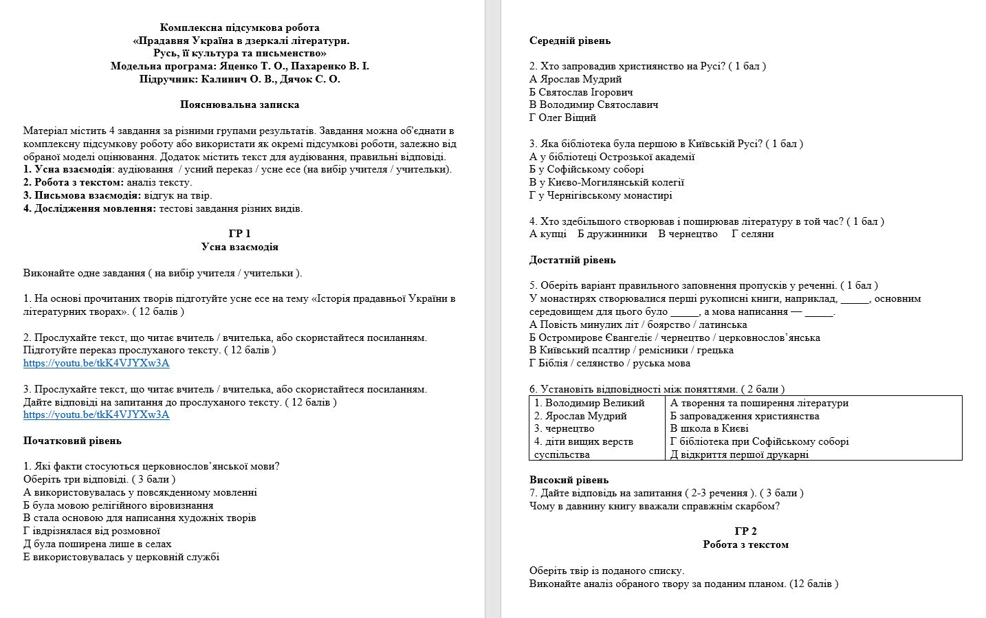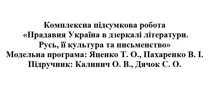 8 клас. Українська література. Комплексна підсумкова робота «Прадавня Україна в дзеркалі літератури. Русь, її культура та письменство» ( Калинич )