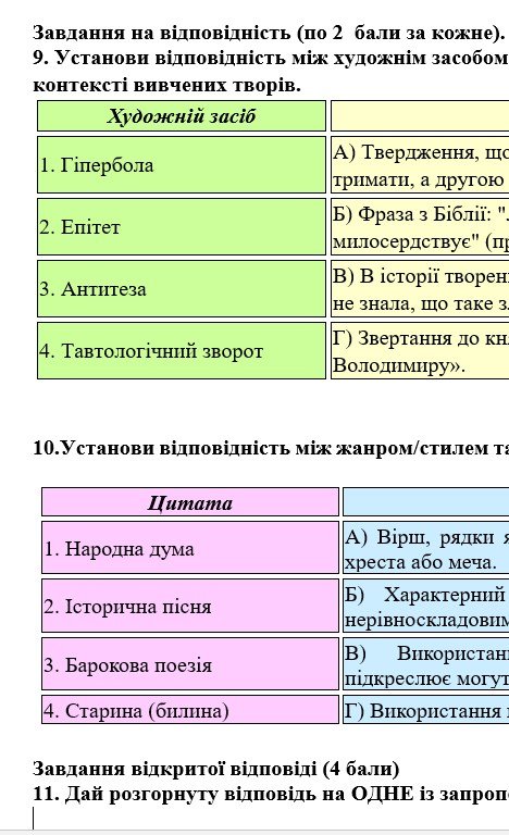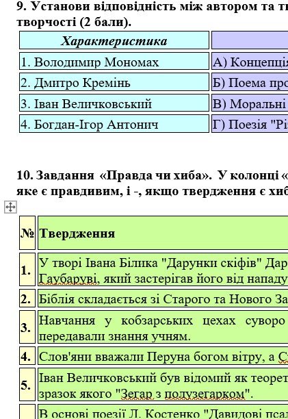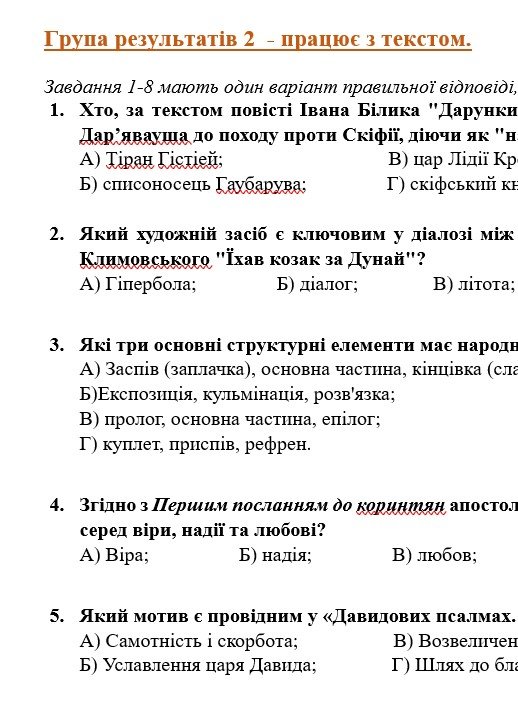 ГР 2 – завдання за прочитаними творами: тестові завдання, завдання правда чи хиба 2 варіанти;