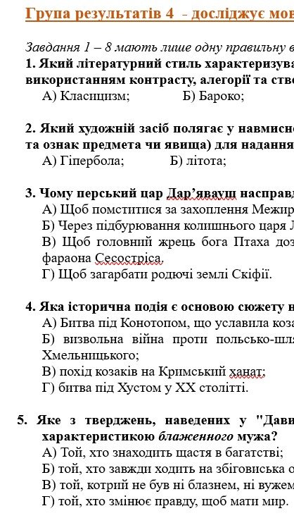 Комплексна підсумкова ( 1 СЕМЕСТР) робота з української літератури для 8 класу ГР 1, ГР 2, ГР 3, ГР 4 за модельною навчальною програмою Яценко; підручник Калинич. Робота охоплює розділи “Прадавня Україна в дзеркалі літератури”, “Заповідь любові: Біблія та українська література”, “Література козацької України”