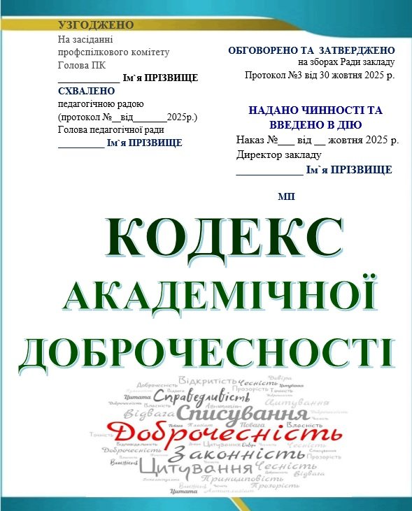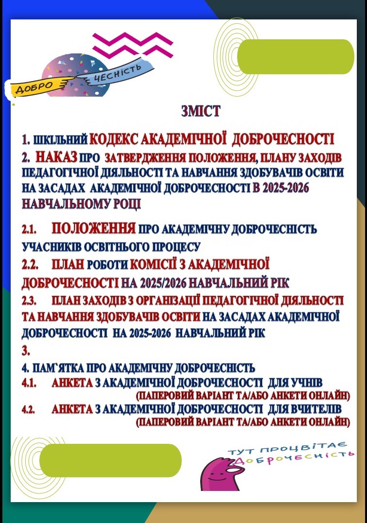 2. НАКАЗ ПРО ЗАТВЕРДЖЕННЯ ПОЛОЖЕННЯ, ПЛАНУ ЗАХОДІВ ПЕДАГОГІЧНОЇ ДІЯЛЬНОСТІ ТА НАВЧАННЯ ЗДОБУВАЧІВ ОСВІТИ НА ЗАСАДАХ АКАДЕМІЧНОЇ ДОБРОЧЕСНОСТІ В 2025-2026 НАВЧАЛЬНОМУ РОЦІ