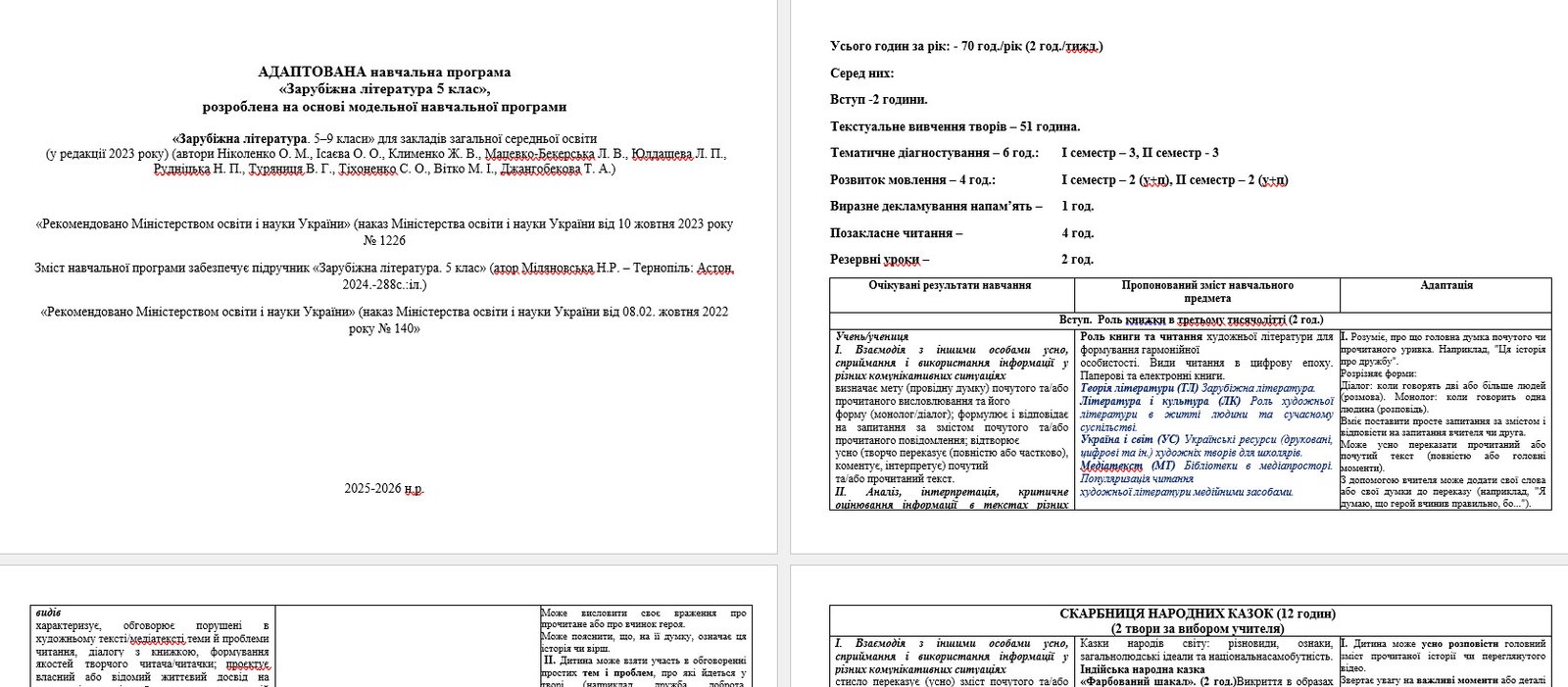 Навчальна програма із зарубіжної літератури 5 клас НУШ 2025 н. р. (52,5 години, за Ніколенко) + р...