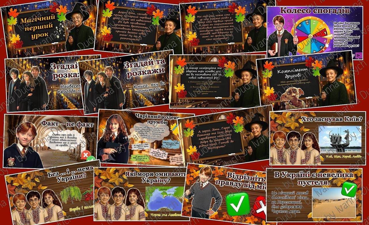 Анімована інтерактивна презентація-гра до першого уроку в стилі Гаррі Поттера + конспект уроку, 1 вересня 2025, перший дзвоник, день знань