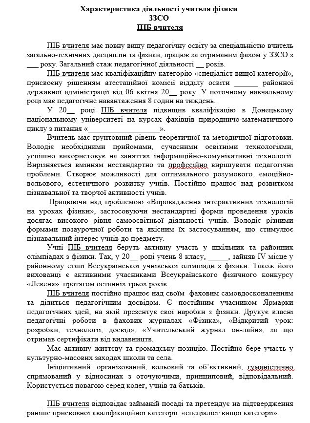 Матеріали «Атестаційна характеристика діяльності вчителя фізики» будуть надіслані в електронному вигляді на вашу поштову скриньку одразу після оплати.
