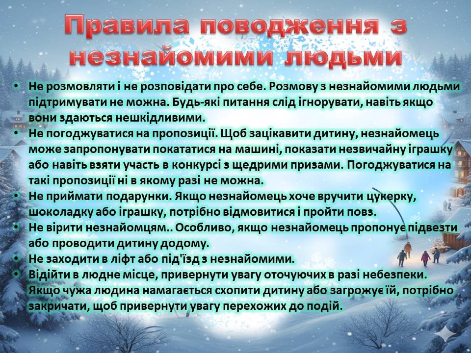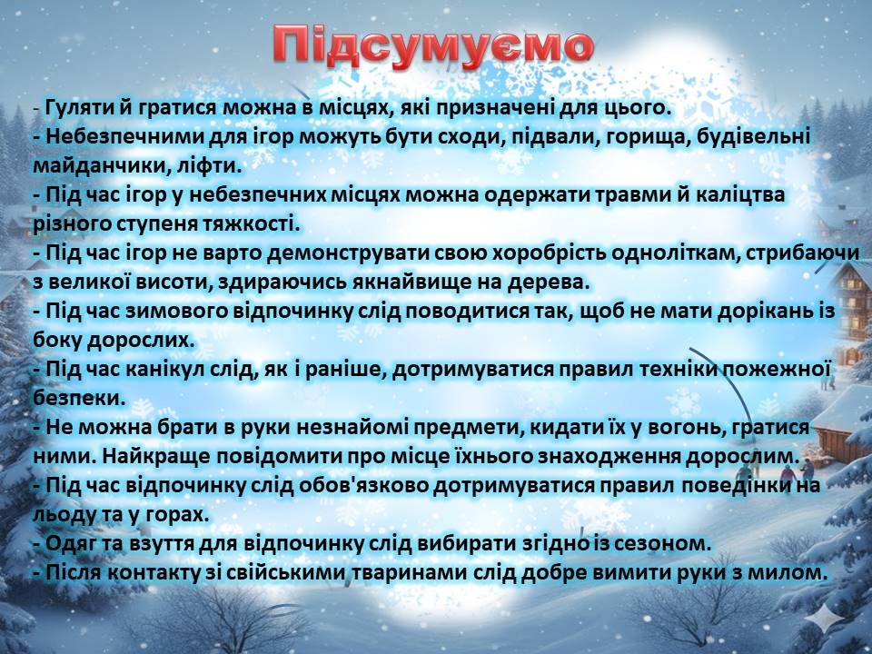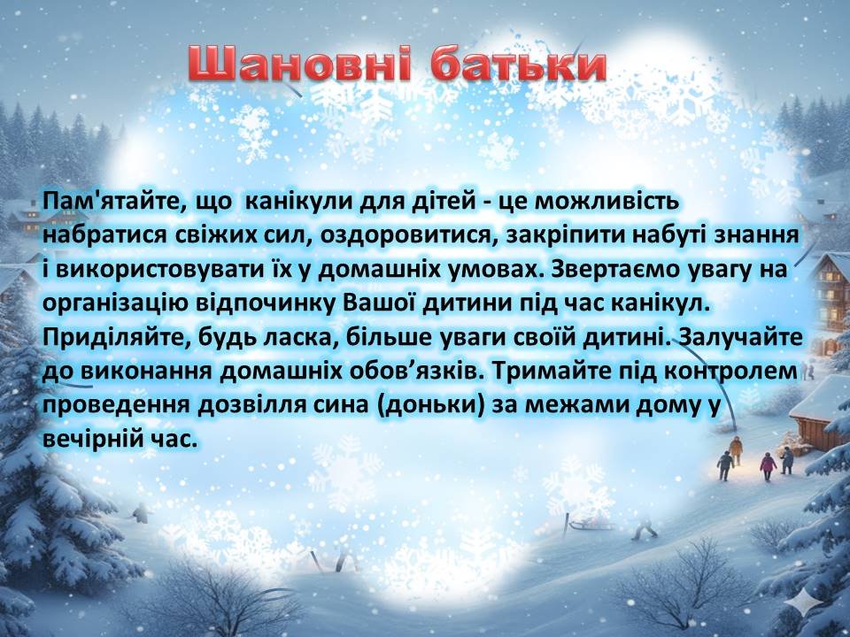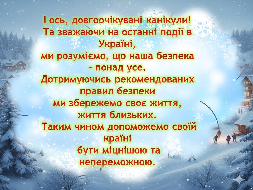 Презентація ПАМ’ЯТКА “Безпечні канікули” для використання при проведенні інструктажів з учнями на зимові канікули