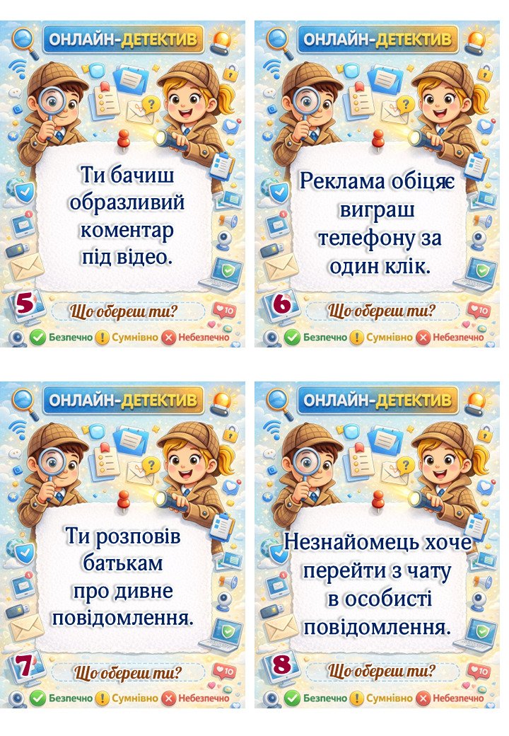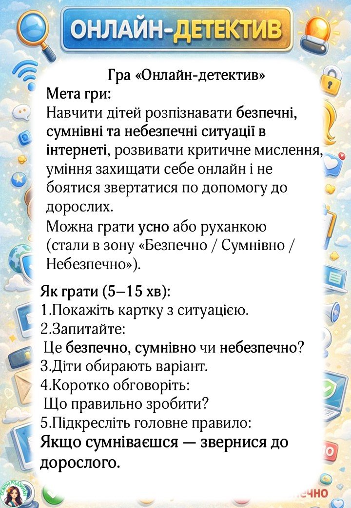 Матеріали «День безпечного інтернету. Гра “Онлайн-детективи” + сертифікати для учнів.» будуть надіслані в електронному вигляді на вашу поштову скриньку одразу після оплати.