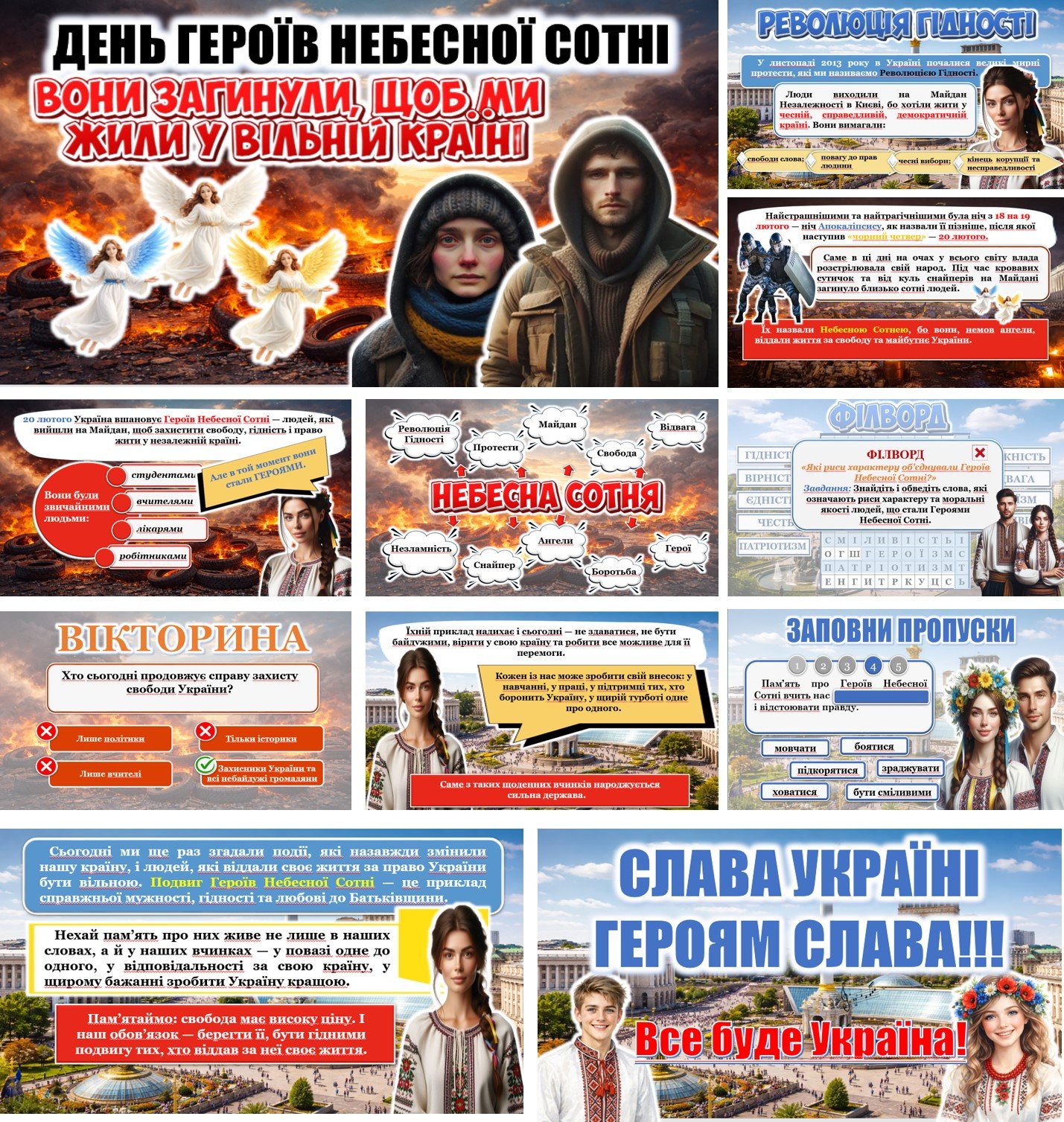 Матеріали «🕯 День Героїв Небесної Сотні. Презентація “Вони загинули, щоб ми жили у вільній країні”+ конспект» будуть надіслані в електронному вигляді на вашу поштову скриньку одразу після оплати.