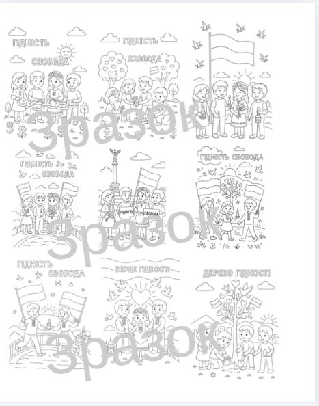 Створено серію чорно-білих розмальовок до Дня Гідності та Свободи.