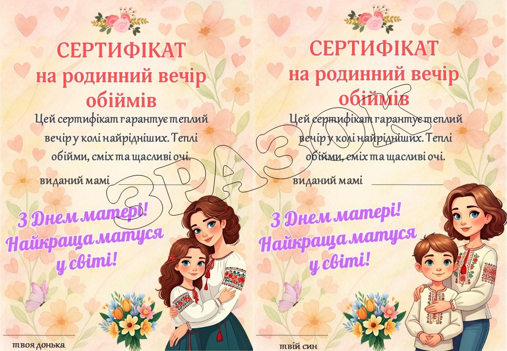 Матеріали «День матері. Сертифікати для мами.» будуть надіслані в електронному вигляді на вашу поштову скриньку одразу після оплати.