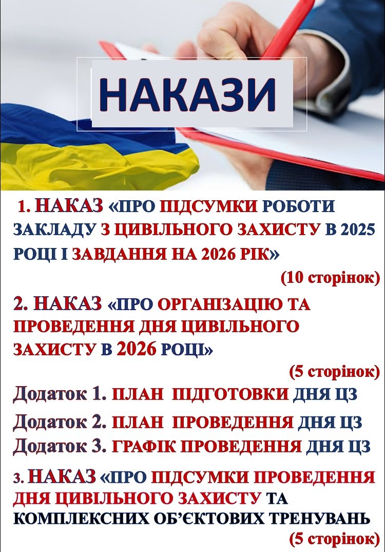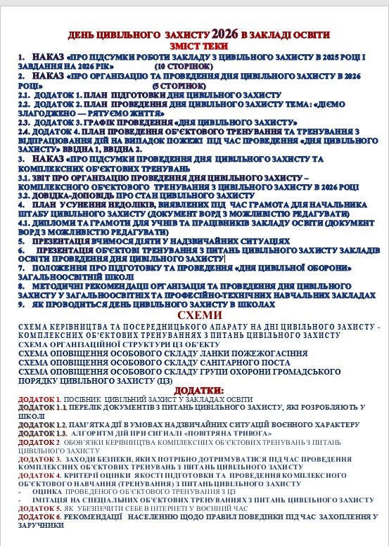 ДЕНЬ ЦИВІЛЬНОГО ЗАХИСТУ 2026 В ЗАКЛАДІ ОСВІТИ (‼МАТЕРІАЛИ ДЛЯ КЕРІВНИКА ЗАКЛАДУ ТА/ЧИ ЗАСТУПНИКІВ: НАКАЗИ, ПЛАН ПІДГОТОВКИ ТА ПРОВЕДЕННЯ, ЗВІТ