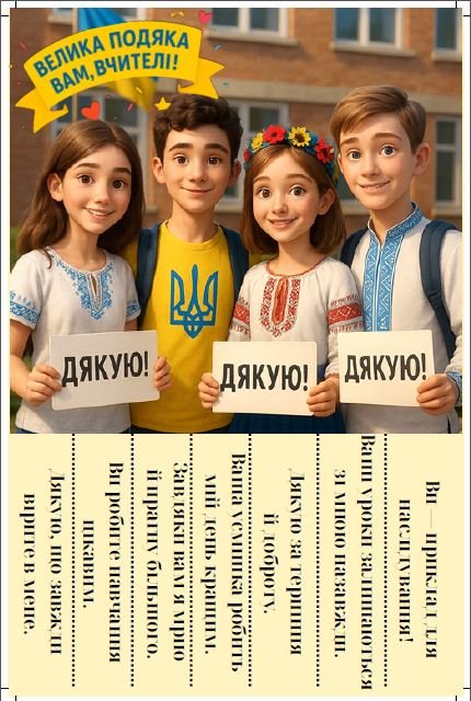 Матеріали «День Вчителя. Активність “Дякуємо вчителям”.» будуть надіслані в електронному вигляді на вашу поштову скриньку одразу після оплати.