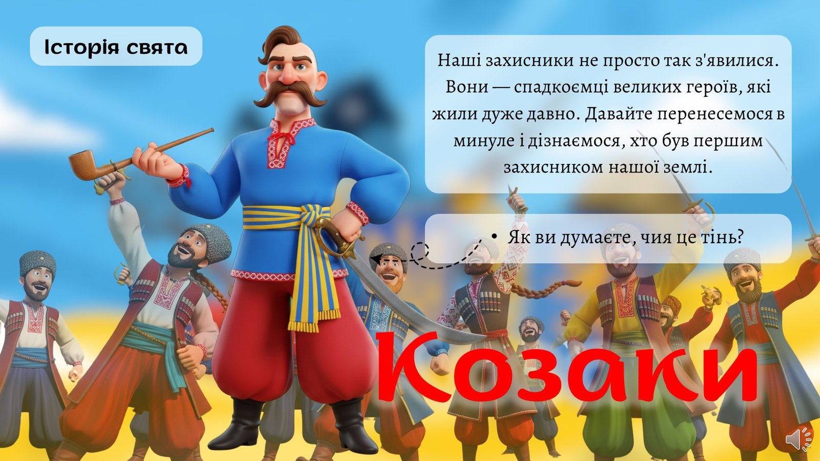 День захисника та захисниці (інтерактивна презентація офлайн, онлайн) + конспект-супровід для вчителя (День українського козацтва, Покрова)