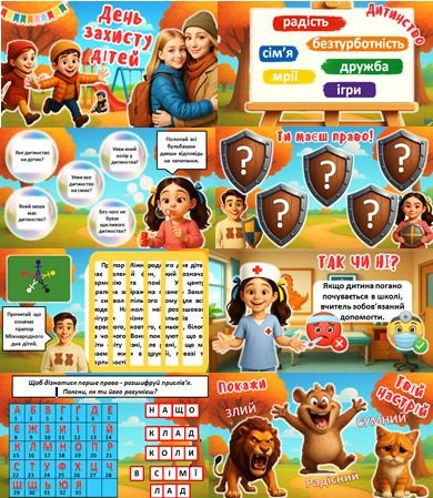 Як купити матеріал «День захисту дітей — 20 листопада. Всесвітній день дитини. Інтерактивна презентація + конспект + мегарозмальовка + розтяжка + постер + медальки і карт»?