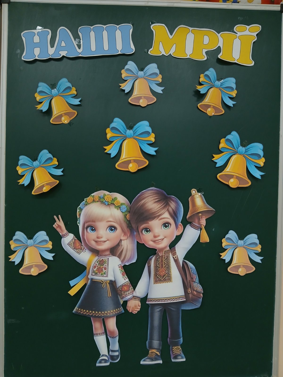 День знань 2025 Оформлення дошки. Перший дзвоник 2025 (Розтяжка, постер, яскраві елементи, дзвіночки для дитячих мрій).