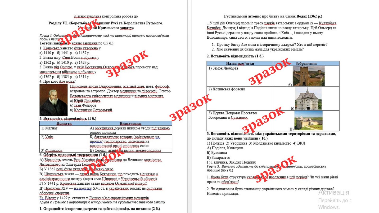 Діагностувальна контрольна робота до Розділу VI. «Боротьба за спадщину Русі та Королівства Руського. Утворення Кримського ханату» (Гісем, Галімов)