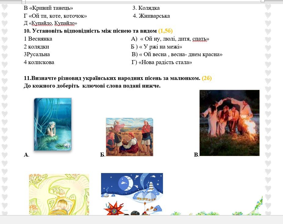 Матеріали «Діагностувальна робота №1. ГР 4. Народна обрядова пісня. Народні колискові пісні. Пісні літературного походження. Українська література. 6 клас НУШ (п» будуть надіслані в електронному вигляді на вашу поштову скриньку одразу після оплати.