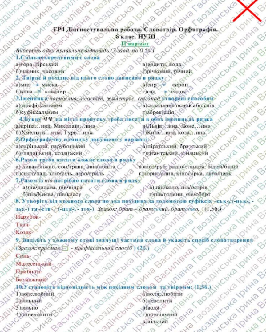 Як купити матеріал «Діагностувальна робота .ГР 4 Словотвір. Орфографія. Українська мова. 6 клас НУШ (КОНТАКТИ:0995391788)»?