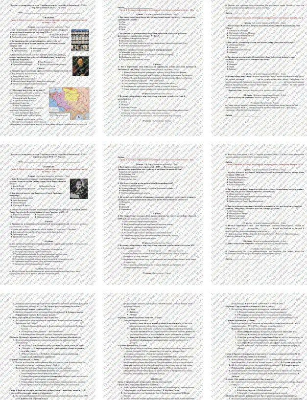 Матеріали «Діагностувальна робота “Українські землі у складі Речі Посполитої (ХVІ — першій половині XVII століття)”. (8 клас). Гр.1, Гр.2, Гр.3. Чотири рівні зав» будуть надіслані в електронному вигляді на вашу поштову скриньку одразу після оплати.