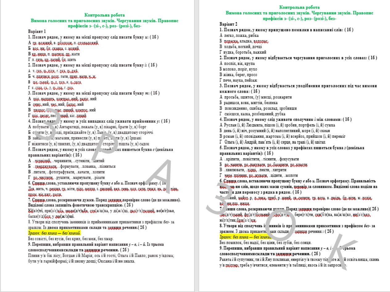 Як купити матеріал «Діагностувальна робота. Вимова голосних та приголосних звуків. Чергування звуків. Правопис префіксів з- (зі-, с-), …. (КОНТАКТИ:0995391788)»?