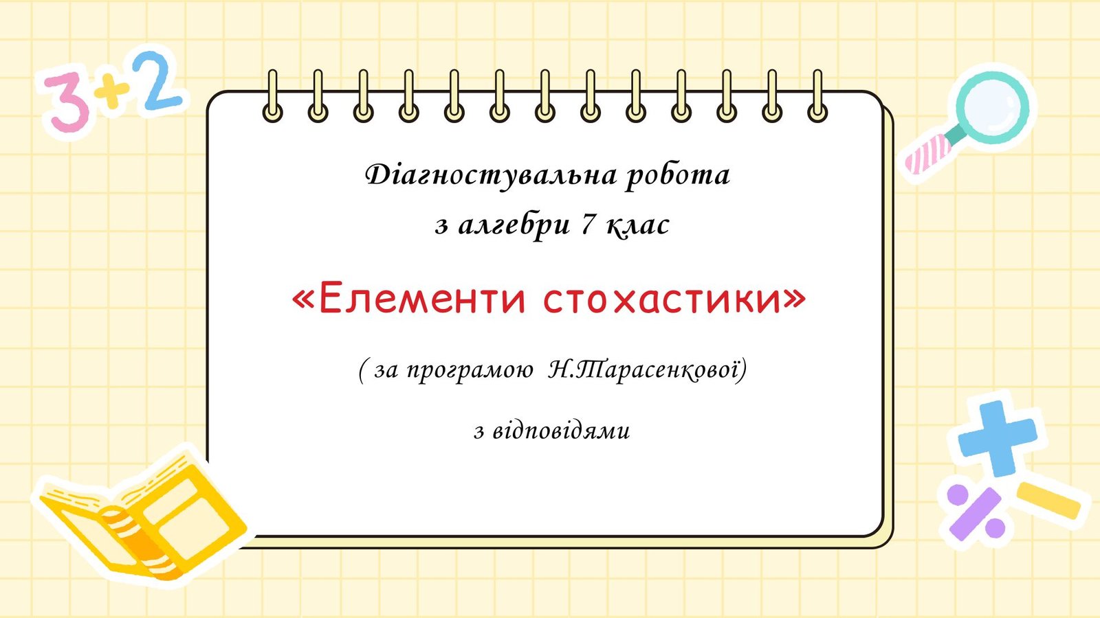 Діагностувальна робота за групами результатів з алгебри 7 клас “Елементи стохастики” з відповідями за програмою Н.Тарасенкової