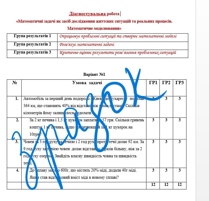Діагностувальна робота за групами результатів з алгебри 7 клас “Математичні задачі як засіб дослідження життєвих ситуацій та реальних процесів. Математичне моделювання” з відповідями за програмою А. Мерзляка
