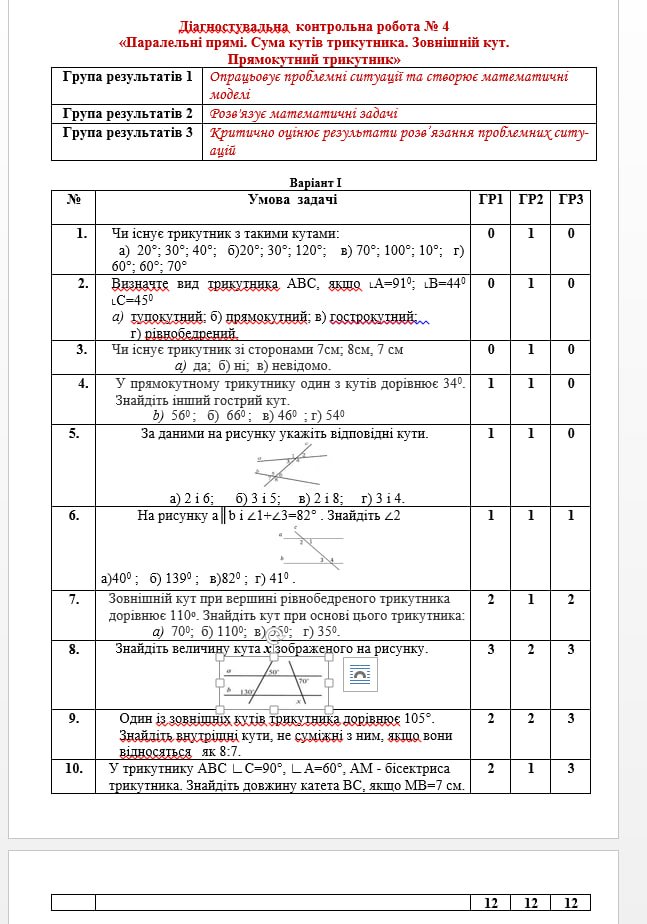 Діагностувальні роботи за ІІ СЕМЕСТ з геометрії 7 клас НУШ за програмою А. Мерзляка.З групами результатів, з відповідями, з підсумковою діагностувальною роботою за рік в комплекті. Матеріал оформлений в форматі Word, в двох варіантах, редагуються. Також є в інших публікаціях є діагностувальні роботи на інші класи і авторів.