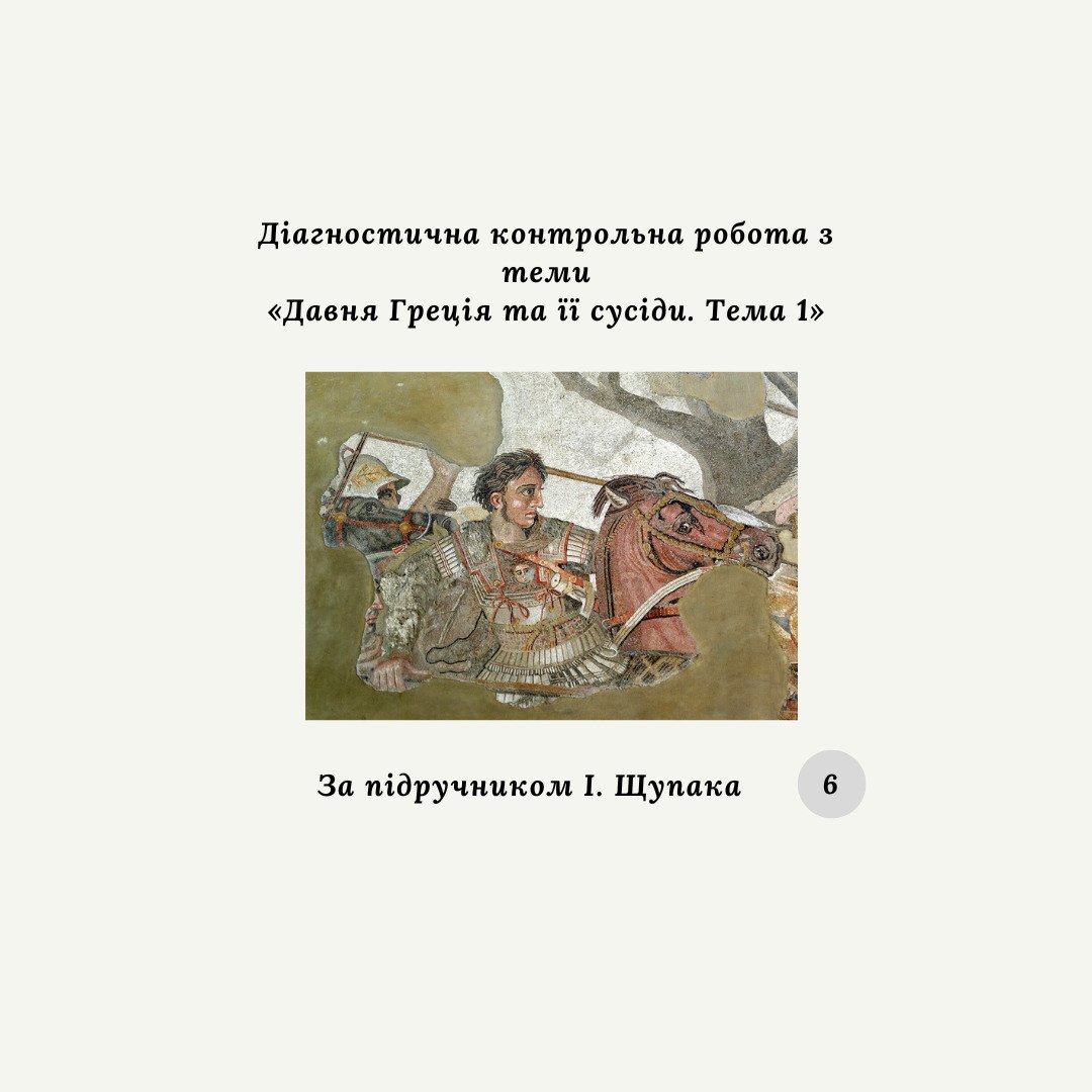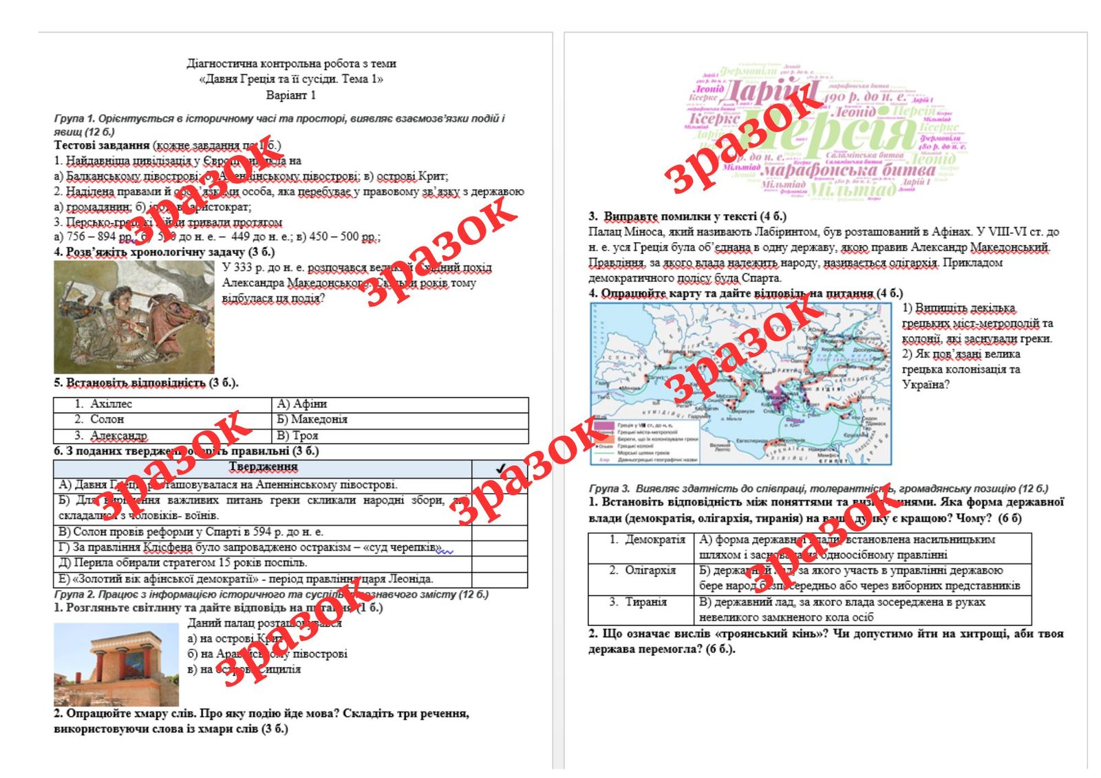 Матеріали «Діагностична контрольна робота “Давня Греція та її сусіди. Тема 1” (І. Щупак) за групами результатів» будуть надіслані в електронному вигляді на вашу поштову скриньку одразу після оплати.