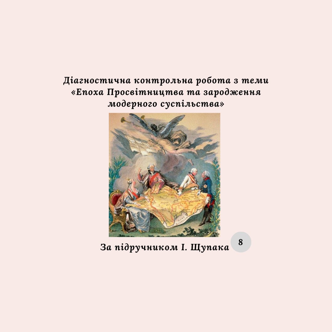 Матеріали «Діагностична контрольна робота з теми «Епоха Просвітництва та зародження модерного суспільства» (за підручником І. Щупака)» будуть надіслані в електронному вигляді на вашу поштову скриньку одразу після оплати.