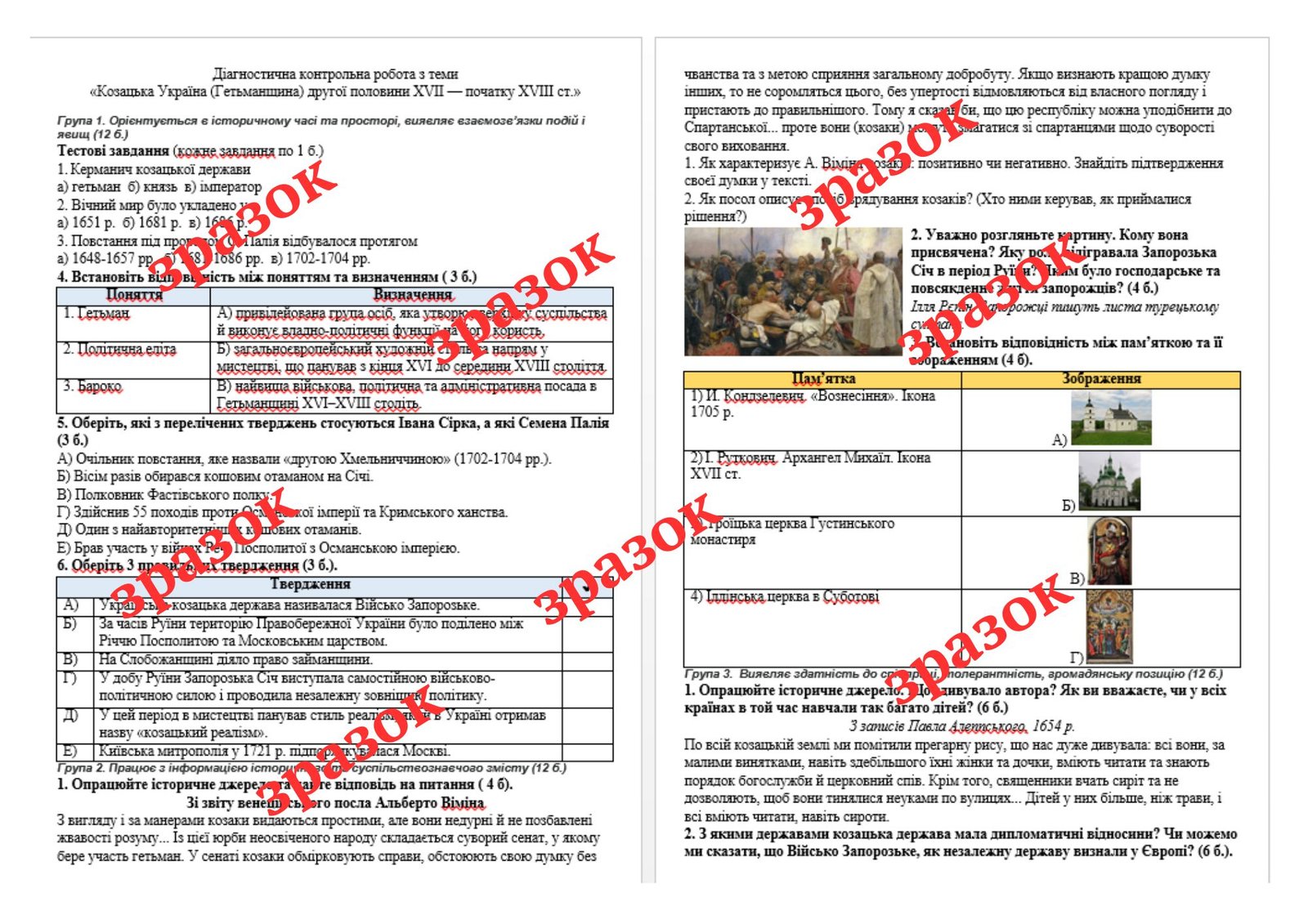 Матеріали «Діагностична контрольна робота з теми «Козацька Україна (Гетьманщина) другої половини XVII — початку XVIII ст.» (за О. Пометун)» будуть надіслані в електронному вигляді на вашу поштову скриньку одразу після оплати.