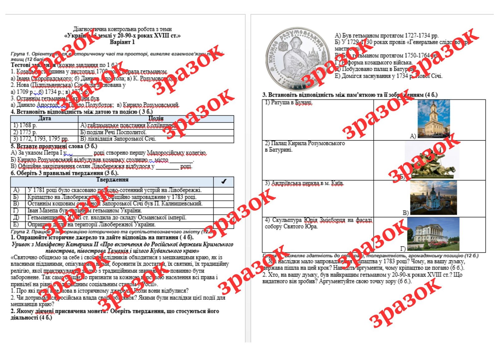 Як купити матеріал «Діагностична контрольна робота з теми «Українські землі у 20-90-х роках XVIII ст.» (за підручником Г. Хлібовської)»?