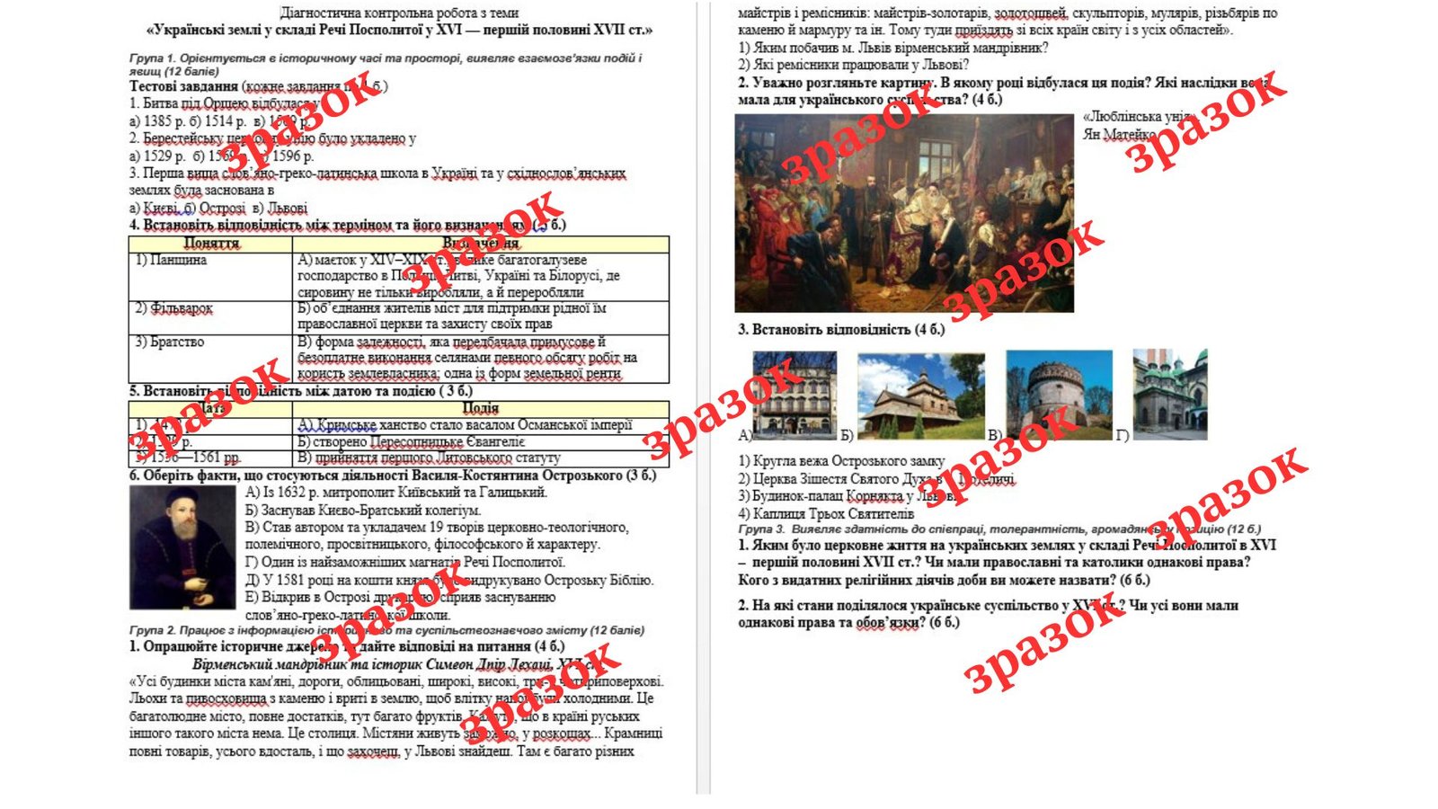 Діагностична робота з розділу “Українські землі у складі Речі Посполитої у XVI — першій пол...