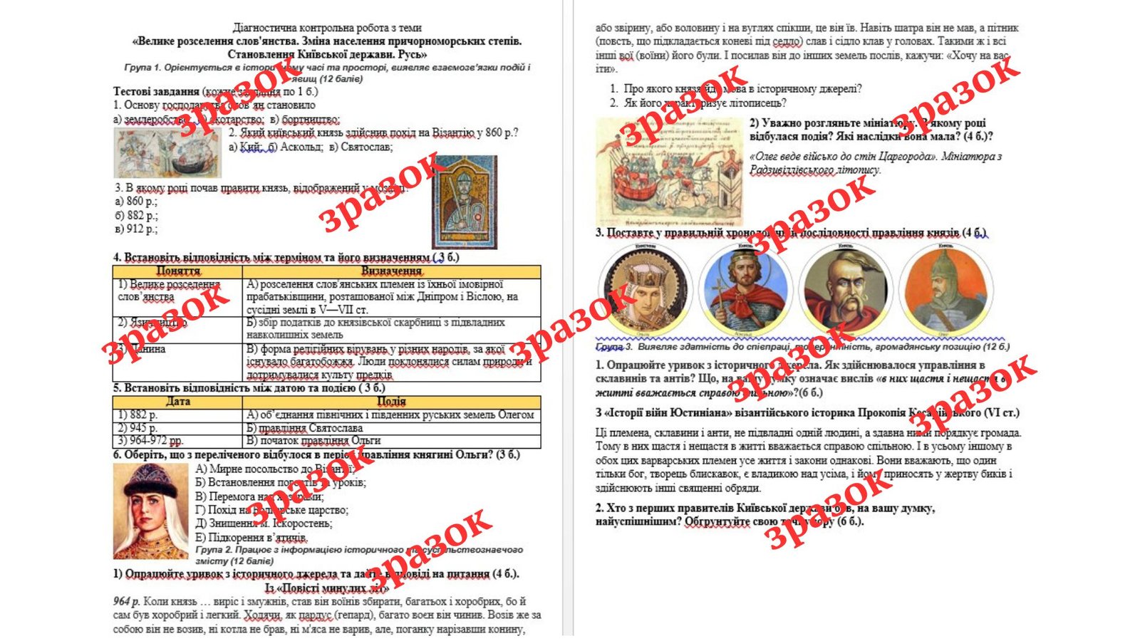 Як купити матеріал «Діагностична контрольна робота з теми «Велике розселення слов’янства. Зміна населення причорноморських степів. Становлення Київської держави. Русь» (Г»?