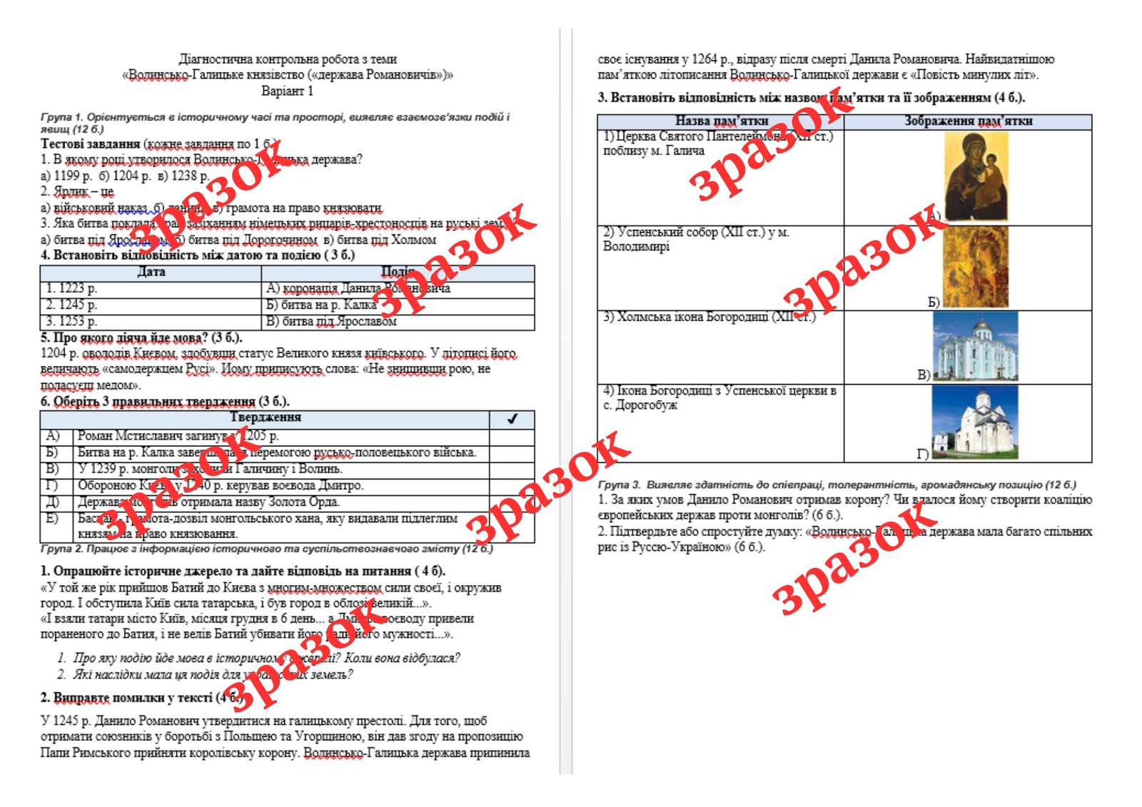 Матеріали «Діагностична контрольна робота з теми «Волинсько-Галицьке князівство («держава Романовичів»)» Щупак» будуть надіслані в електронному вигляді на вашу поштову скриньку одразу після оплати.