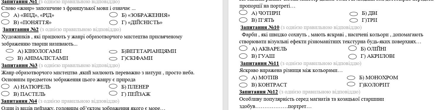Комплексна діагностична робота образотворче мистецтво 6 клас І семестр (Кондратова)