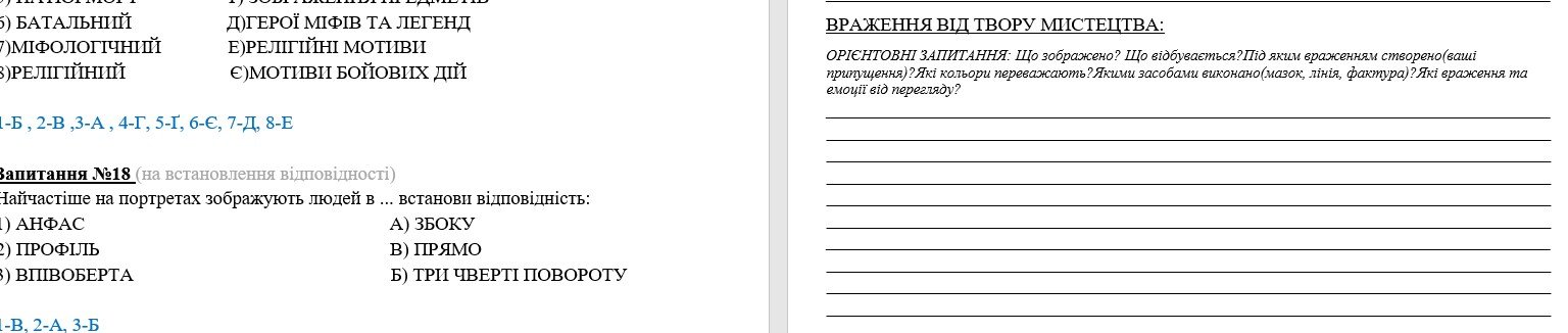 Комплексна діагностична робота образотворче мистецтво 6 клас ІІ семестр (Гайдамака)