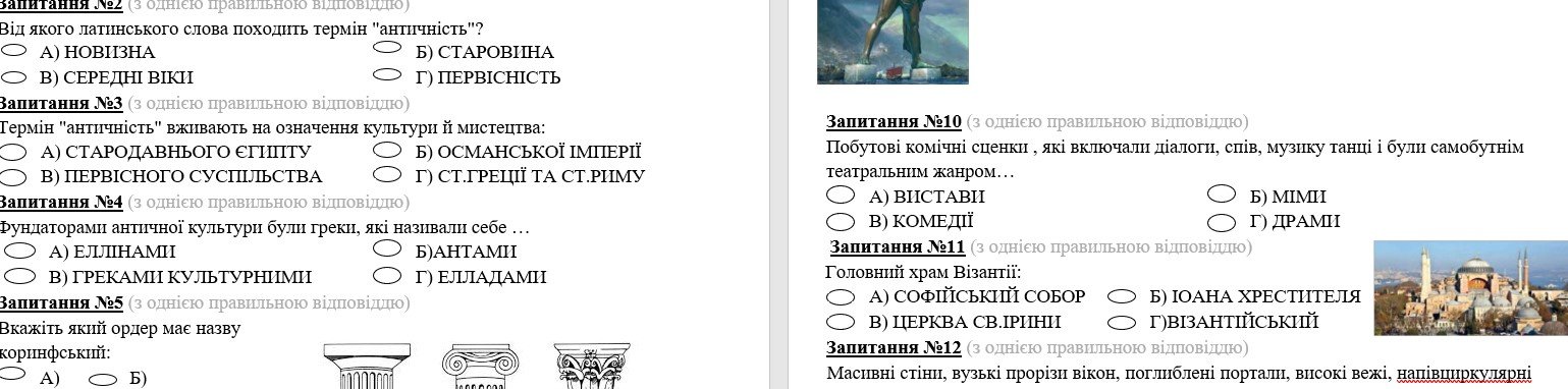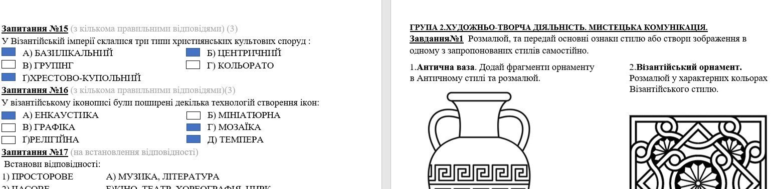 Комплексна діагностична робота образотворче мистецтво 6 клас І семестр (Кондратова)