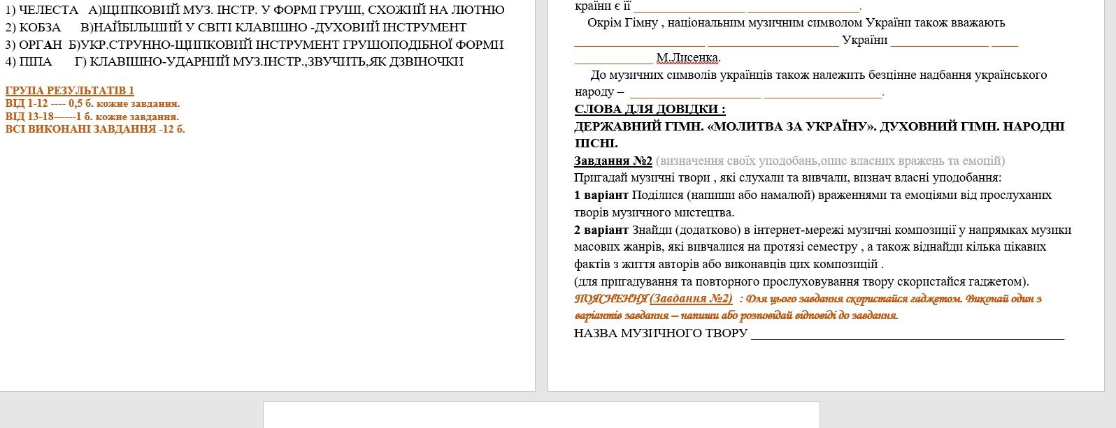 Діагностична робота №1(1-8уроки) (за ГР) 5 клас(інтегрований курс). Музичне мистецтво.Л.Масол