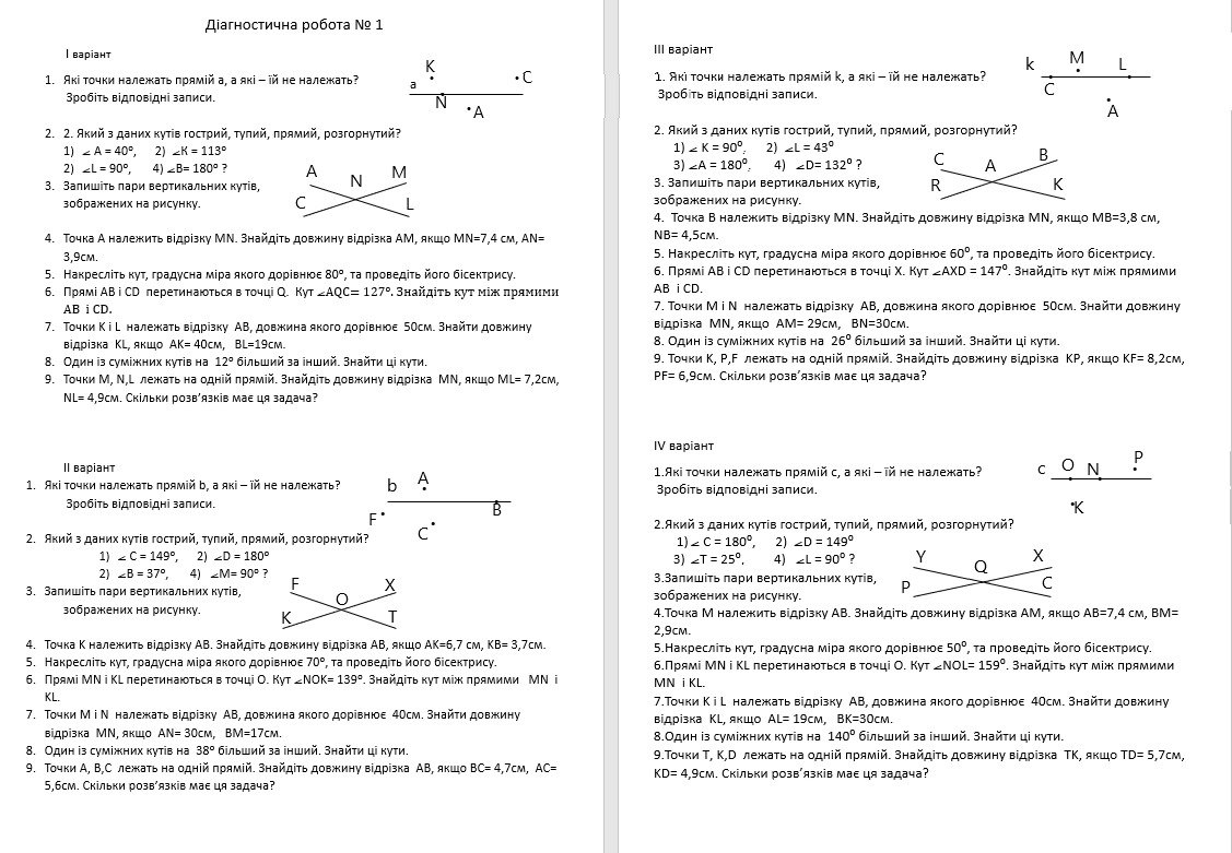 Робочі аркуші з геометрії для учнів 7 класу з теми “Вертикальні кути та їх властивості”