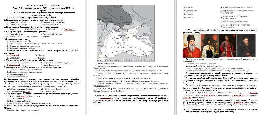 ДІАГНОСТИЧНА РОБОТА з історії України 8 КЛАС за розділом 2. Становлення козацтва (XVI – перша половина XVII ст.).
