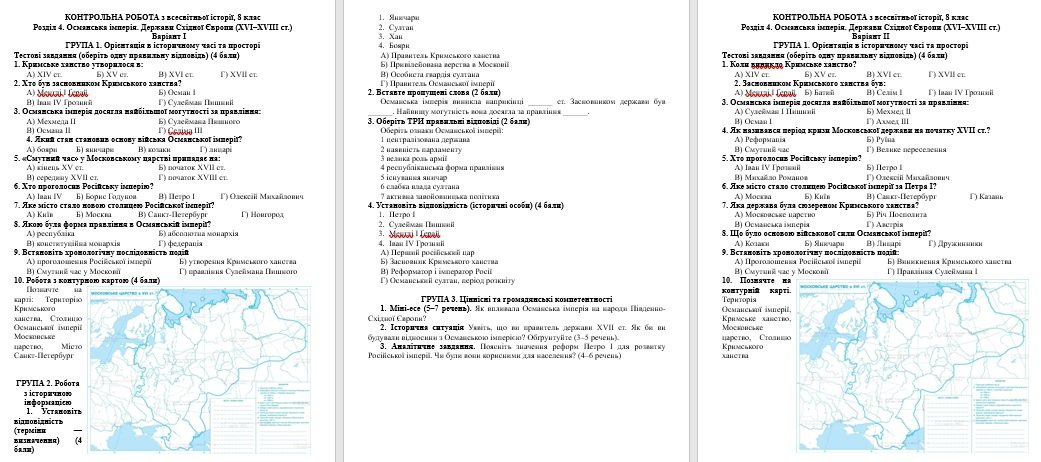 Діагностична робота з всесвітньої історії, 8 клас розділ 4. Османська імперія. Держави Східної Європи (XVI–XVIII ст.) автор Васильків І.