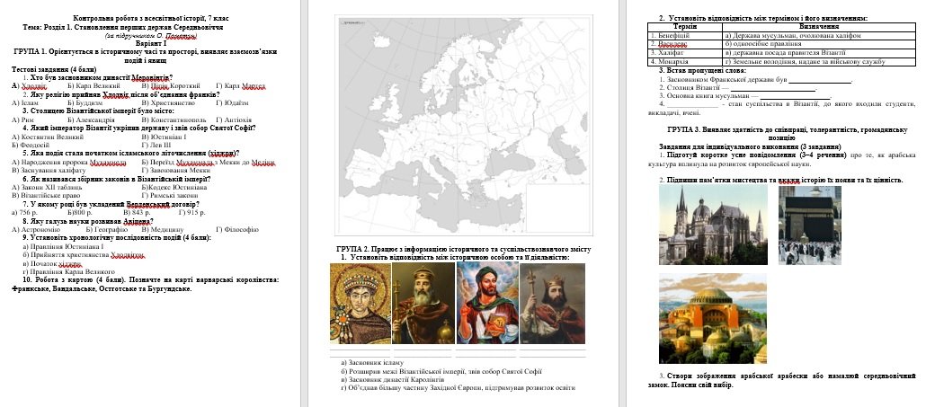 Комплексна діагностична контрольна робота з теми «Становлення перших держав Середньовіччя»(Пометун)