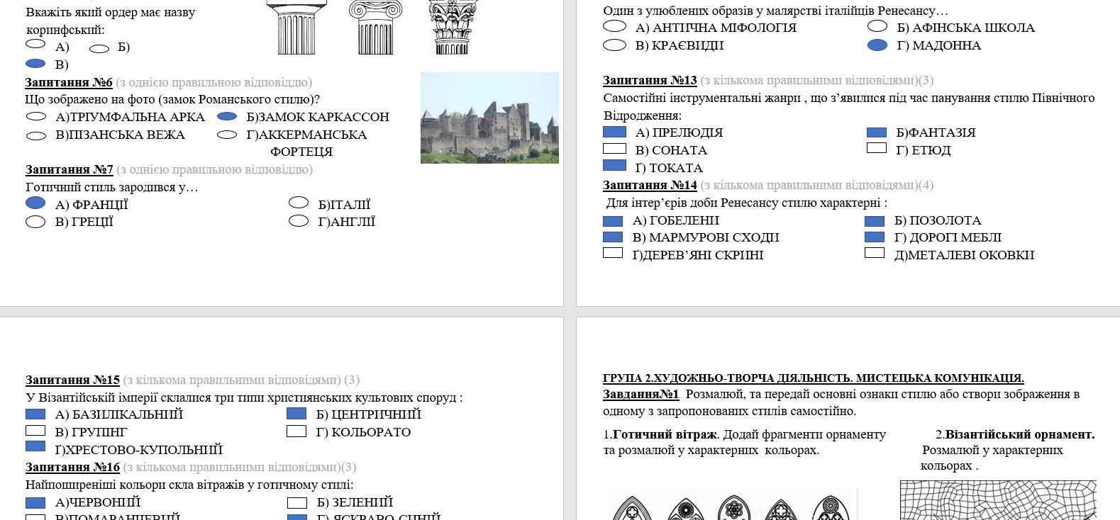Діагностична робота №1(1-8уроки) (за ГР) 7 клас (інтегрований курс).Образотворче мистецтво.Л.Конд...