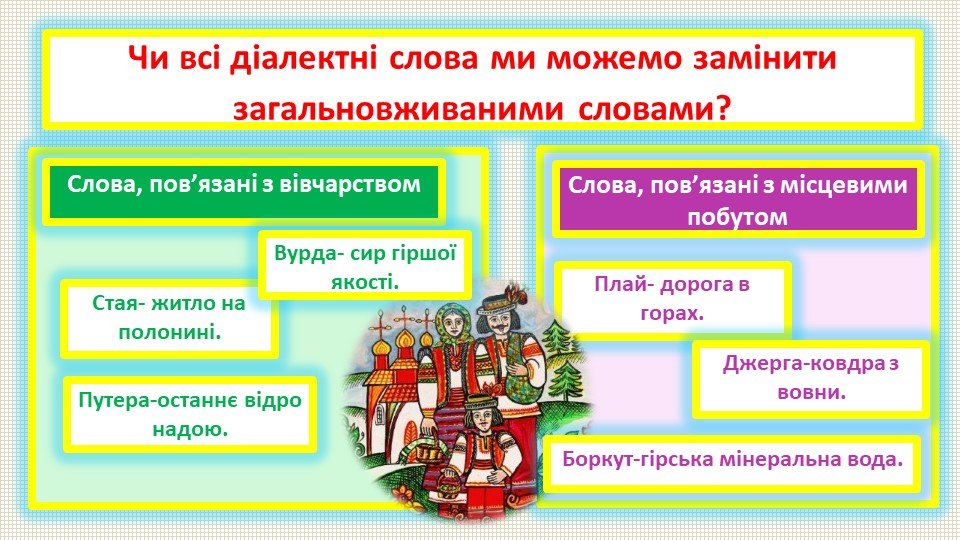 Чи всі діалектні слова ми можемо замінити загальновживаними словами?