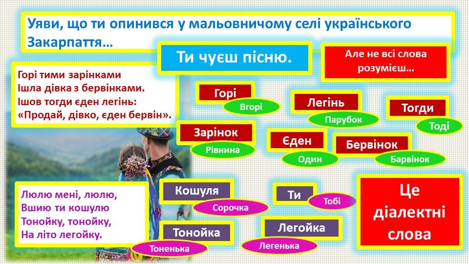 Головне зображення розробки: Діалектні слова. Карта діалектів України.